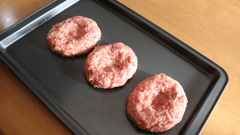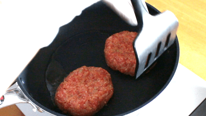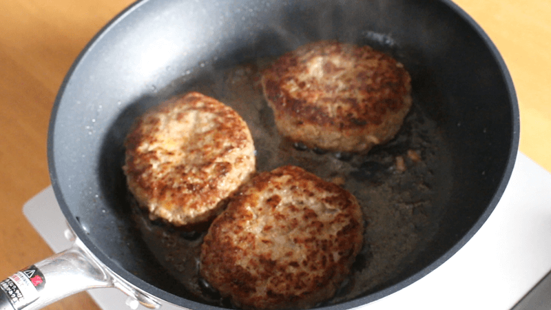 - フライパンを熱したところにハンバーグを入れる (フライパン熱しすぎは×)