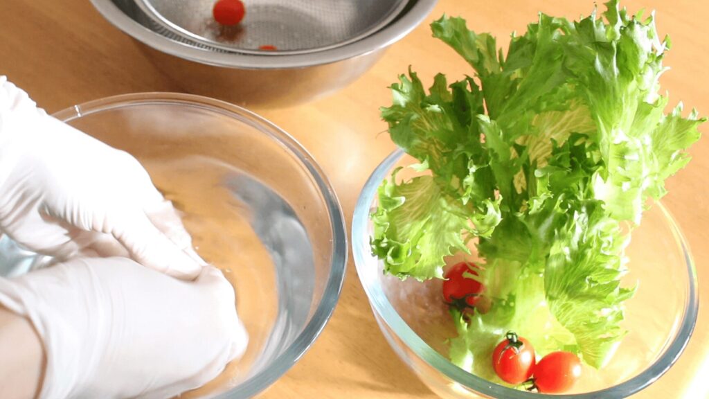 タネをボウルで平らにならし、食べやすい大きさに分けて整えます。