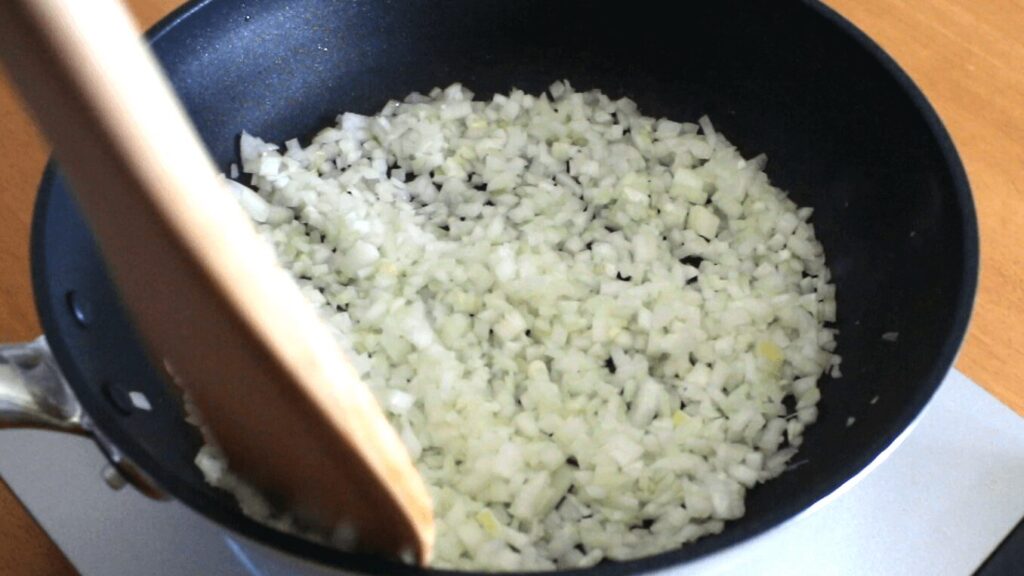 玉ねぎがしんなりし、甘みが出て「美味しい」と感じるくらいになったら火を止める。