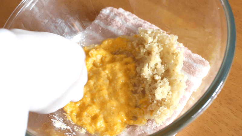 粘りが出始めるまで、手早く混ぜる。(混ぜすぎNG)