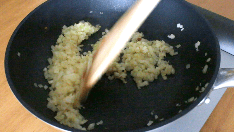 玉ねぎを入れて炒める