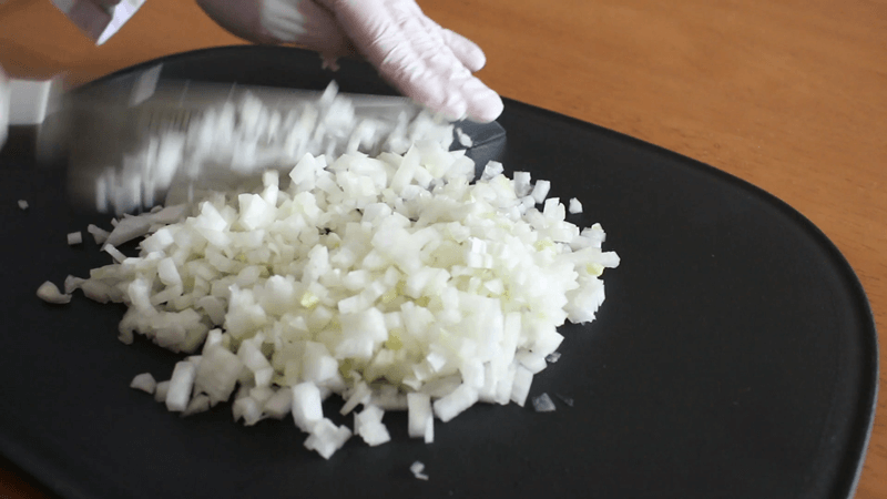 玉ねぎのみじん切りをする