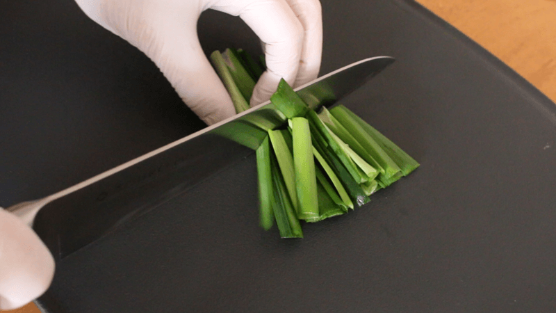 にらは2〜3cmほどのざく切りにします。