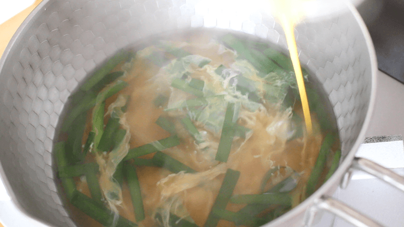 簡単なのに失敗しない!にら玉スープの作り方【ふわふわ卵のコツ】