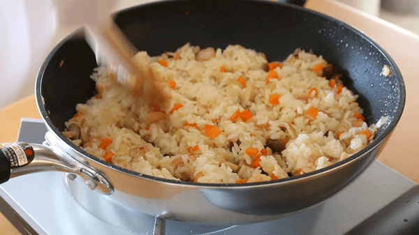 そこからフランスに伝わって、今のピラフになったみたいです。 - 本来のピラフは「生のお米を炒めてから炊き上げる料理」。